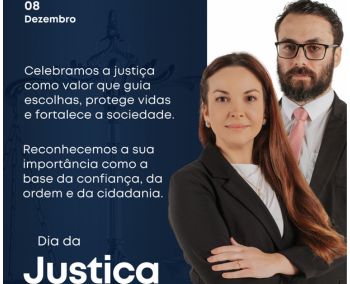 Neste 8 de dezembro, celebramos o Dia da Justiça, uma data que reafirma nosso compromisso com aquilo que sustenta uma sociedade verdadeiramente democrática. Celebramos a justiça como valor que guia escolhas, protege vidas e fortalece a sociedade. Reconhecemos a sua importância como a base da confiança, da ordem e da cidadania.